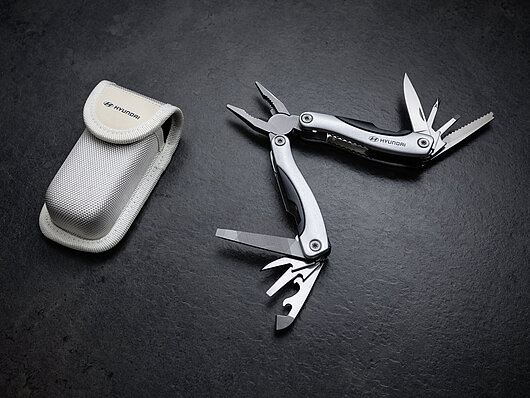 9 інструментів із 13 різними функціями: гострогубці, стандартні плоскогубці, різаки для дроту, 3 плоскі викрутки (мала, середня та велика), хрестова викрутка, ніж, пила/рибогубець, напилок, розгортка, відкривачка для консервів та відкривачка для пляшок