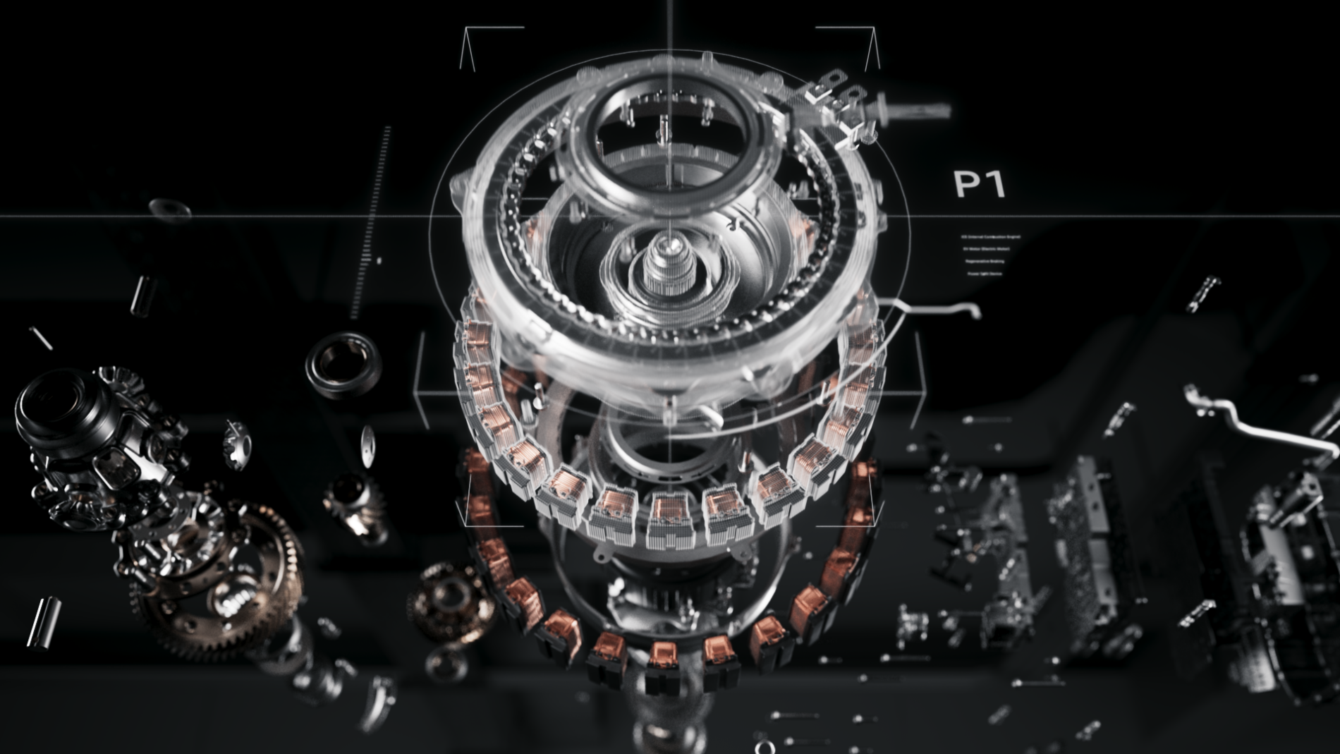 Абсолютно нова трансмісія включає в себе новий мотор P1, який керує запуском, генерацією енергії від батареї та розподілом енергії для сприяння руху. Привідний мотор трансмісії P2 відповідає за рух і рекуперативне гальмування. Ця інтегрована система з подвійним двигуном покращує потужність, продуктивність і економію палива, одночасно досягаючи плавного перемикання передач і зниженого рівня шуму та вібрації для більш комфортного водіння.